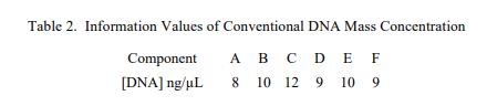 表 2 列出了 NIST SRM 2393亨廷頓病CAG重復長度突變(標準品) 組分的 DNA 質量濃度的信息值。這些值是使用 SRM 2372 人類 DNA 定量標準品中的組分 A 校準的五種定量聚合酶鏈式反應 (PCR) 方法的結果的平均值。在 hTERT 基因座處擴增的商業定量 PCR 方法的相對較高結果被排除在平均值之外,因為該基因座有時在細胞系 DNA 中過度表達 [4,5]。